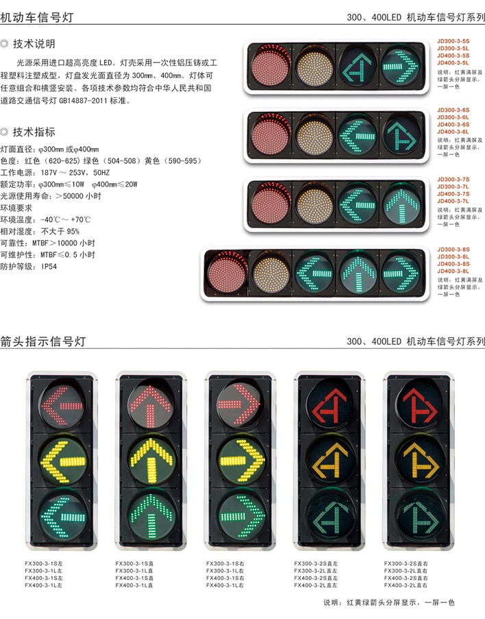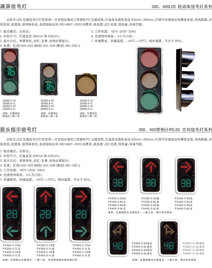交通信號(hào)燈光源采用進(jìn)口超高亮度LED,具有亮度柔和均勻.無光暈色斑、無顆粒感.無光污染、低功率、大視角、采用恒流源,亮度穩(wěn)定無閃爍。燈殼采用一次性鋁壓鑄或I程塑料( PC )注塑成型,燈盤發(fā)光面直徑為200mm300mm.400mm。燈體可任意組合和橫豎安裝。