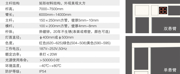 光源采用進(jìn)口超高亮度LED。燈殼采用一次性鋁壓鑄或工程塑料注塑成型,燈盤發(fā)光面直徑為300mm. 400mm。燈桿選用優(yōu)質(zhì)鋼板加工成型,經(jīng)熱鍍鋅處理后表面噴塑。各項(xiàng)技術(shù)參數(shù)均符合中華人民共和國道路交通信號燈GB14887-2011標(biāo)準(zhǔn)。